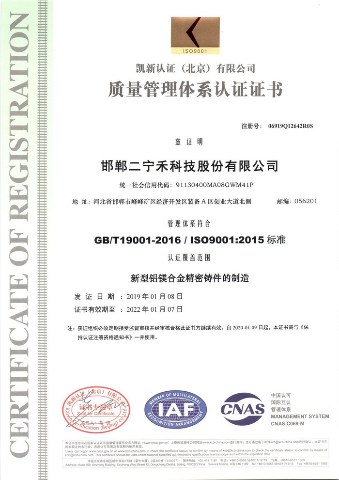 質(zhì)量管理體系認(rèn)證證書(shū)